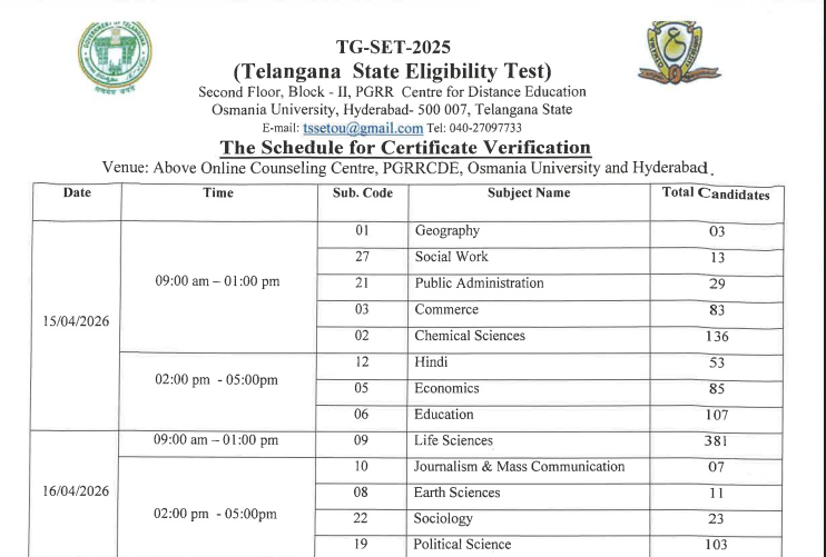 TG SET 2025 సర్టిఫికేట్ వెరిఫికేషన్ తేదీలు ఎక్కడ చూడాలి?